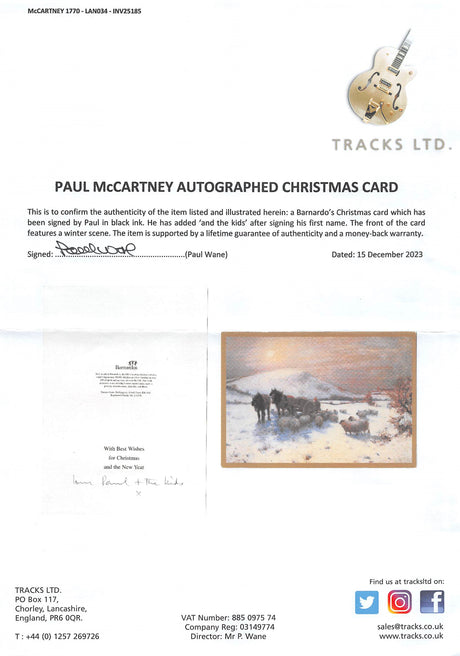 Paul McCartney "Love & The Kids" Signed 6.5x9 Christmas Greeting Card BAS