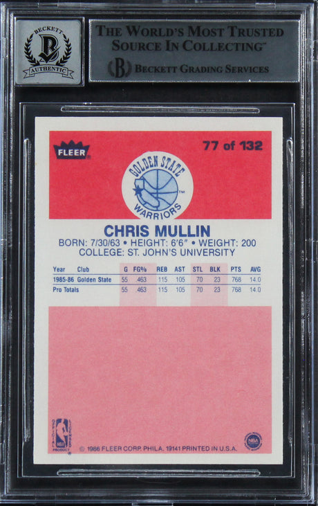 Warriors Chris Mullin "HOF 2011" Signed 1986 Fleer #77 RC Card Auto 10! BAS Slab