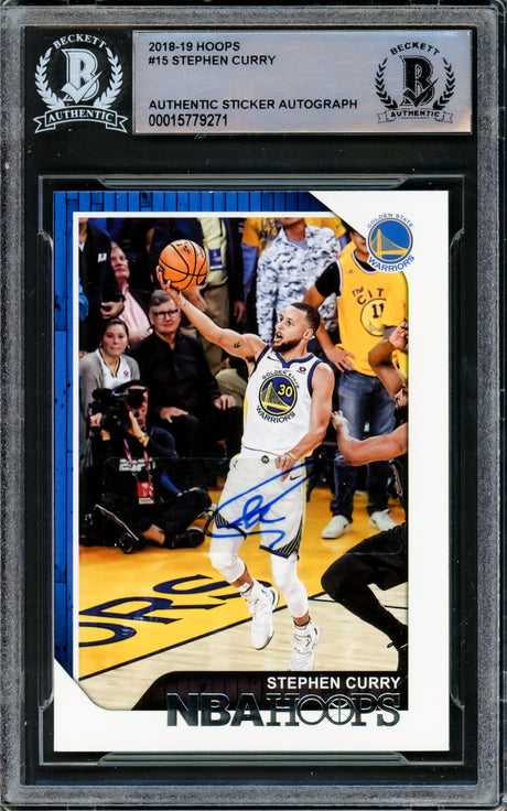 Stephen Curry Autographed 2018-19 Hoops Card #15 Golden State Warriors Beckett BAS #15779269