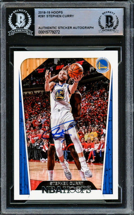 Stephen Curry Autographed 2018-19 Hoops Card #281 Golden State Warriors Beckett BAS #15779272
