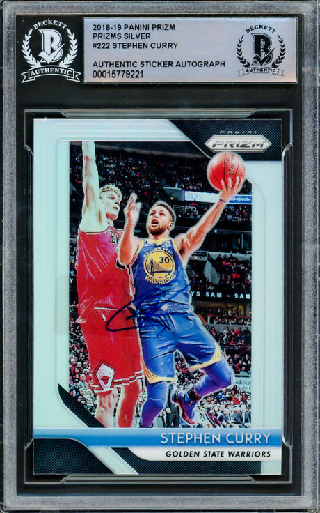 Stephen Curry Autographed 2018-19 Panini Prizm Card #222 Golden State Warriors Beckett BAS #15779223