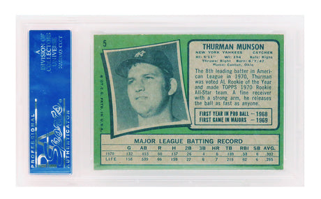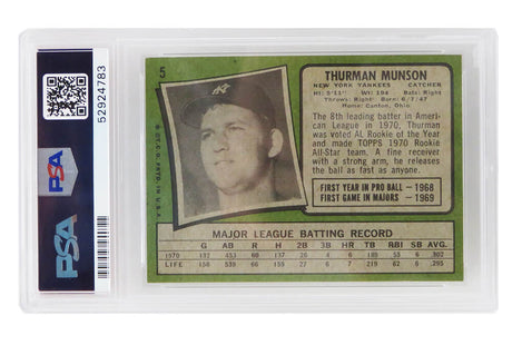 Thurman Munson (New York Yankees) 1971 Topps All Star Rookie Card #5 (2nd Year Card) - PSA 7 NM (D)