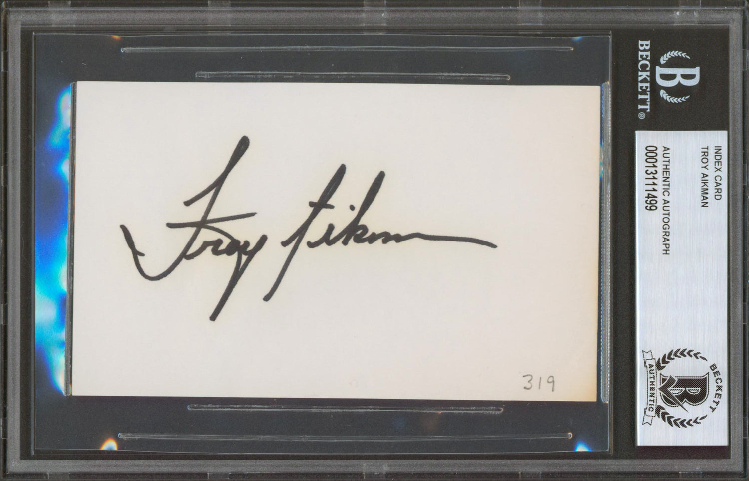 Cowboys Troy Aikman Authentic Vintage Signed 3x5 Index Card BAS Slabbed is backordered and will ship as soon as it is back in stock.