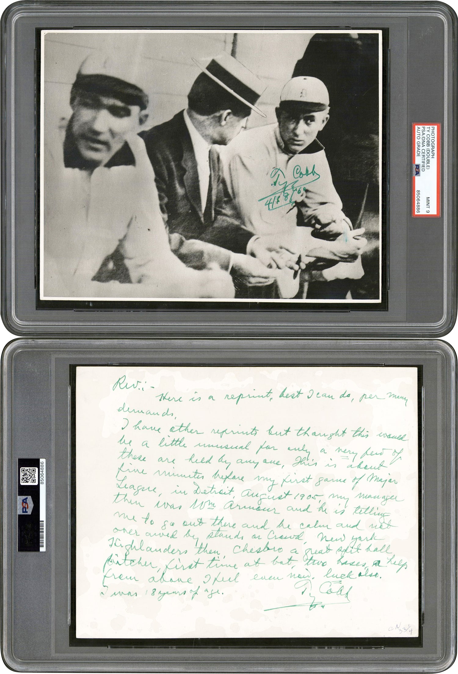 Tigers Ty Cobb Authentic Signed 1905 MLB Debut Photo Auto 9! PSA/DNA Slabbed