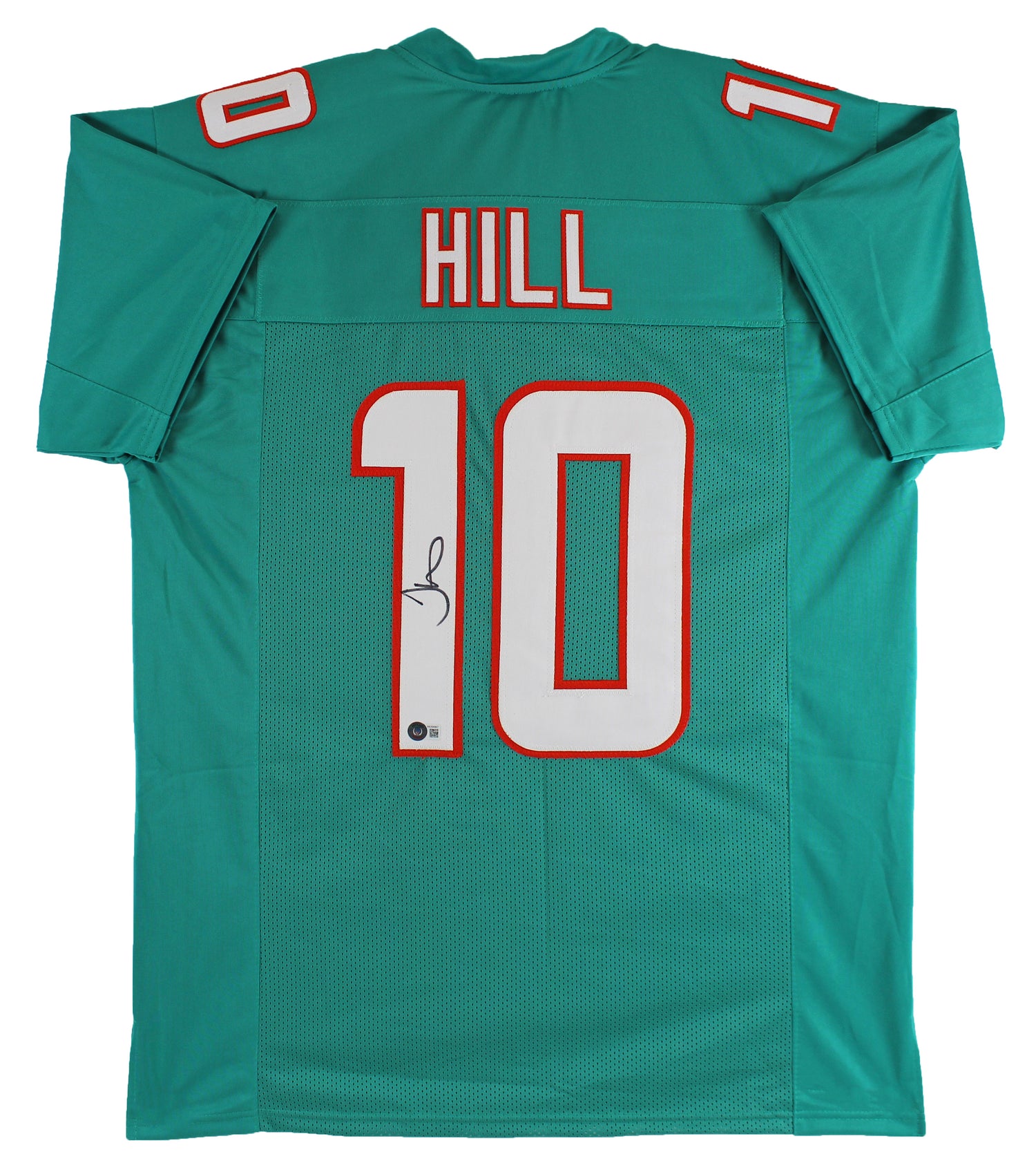 Own a piece of Miami Dolphins history with this Tyreek Hill Autographed Teal Pro Style Jersey. Personally signed by the superstar wide receiver, this jersey is a must-have for any devoted Dolphins fan or memorabilia collector. Guaranteed 100% authentic, this item includes a Beckett Authentication Services (BAS) hologram with a scannable QR code for instant verification.