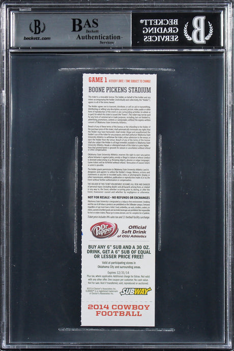 OK State Tyreek Hill Authentic Signed Sept 6th, 2014 Debut Ticket Stub BAS Slab
