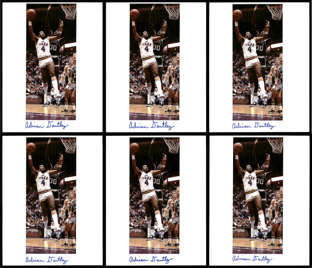 Own a piece of basketball history with this 12-count lot of 8.5x11 photos, each hand-signed by NBA legend Adrian Dantley. A key player in the 1970s and '80s, Dantley made his mark as a six-time NBA All-Star and a Basketball Hall of Fame inductee. These autographed collectibles are perfect for fans and serious memorabilia collectors alike.