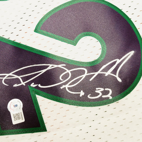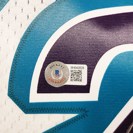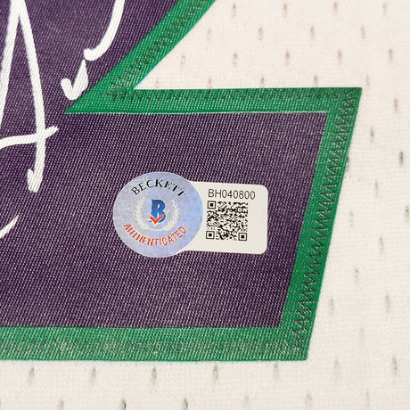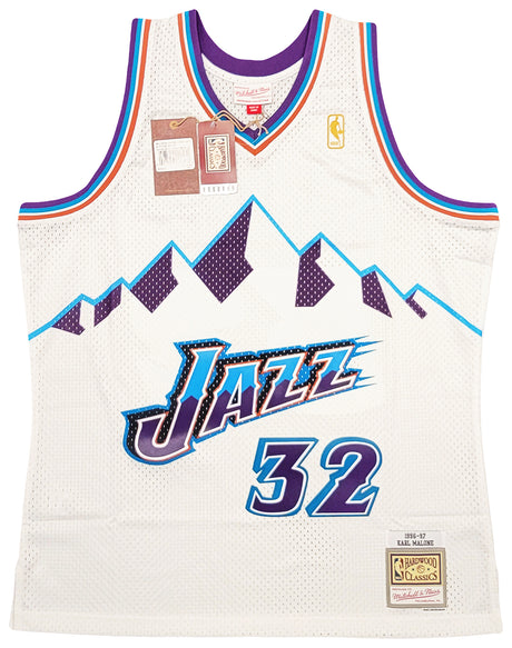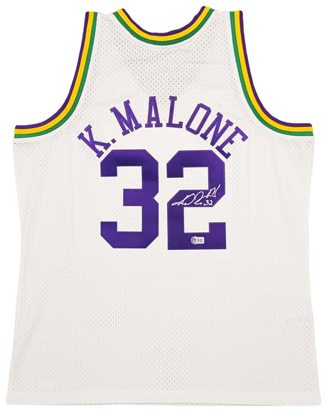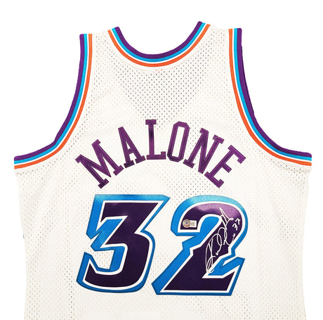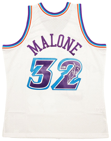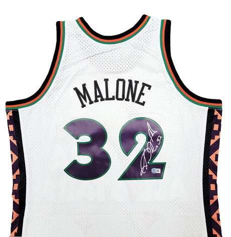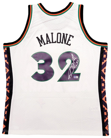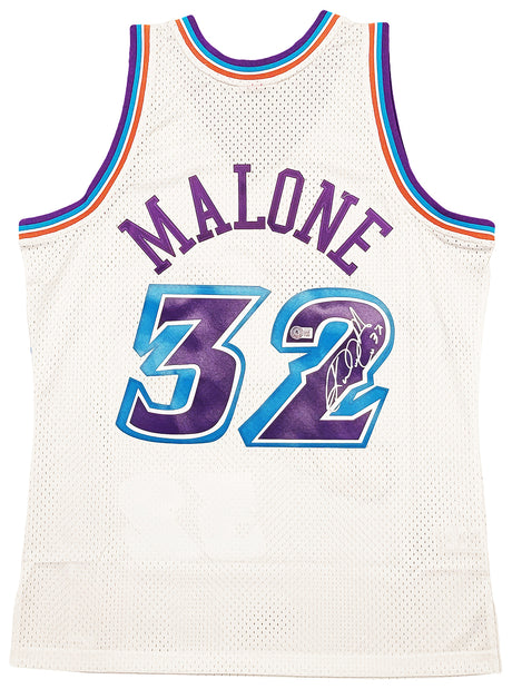Utah Jazz Karl Malone Autographed White Jersey JSA Stock #215763