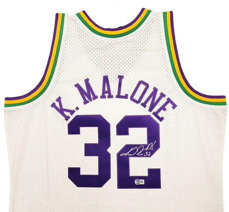 Utah Jazz Karl Malone Autographed White Jersey JSA Stock #215758