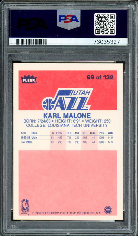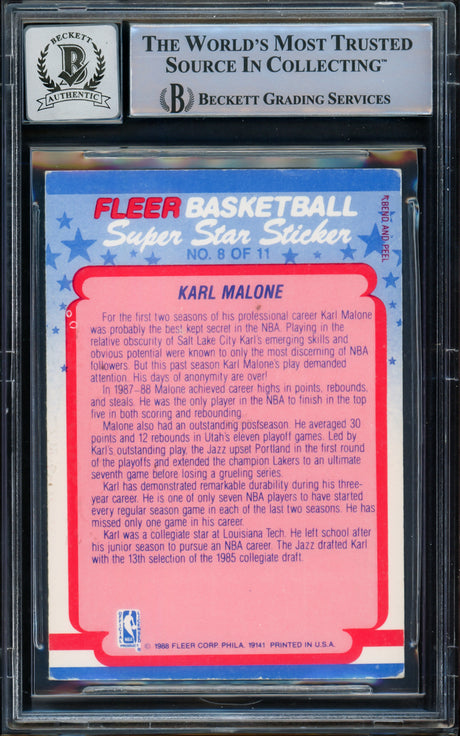 Karl Malone Autographed 1989-90 Fleer Sticker Card #1 Utah Jazz Beckett BAS #15781091