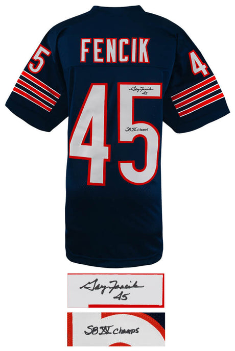 Gary Fencik Signed Navy Custom Football Jersey w/SB XX Champs