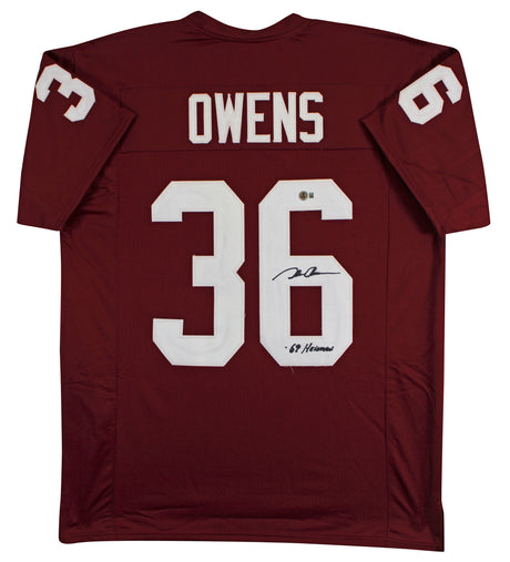 Oklahoma Steve Owens "69 Heisman" Signed Maroon Pro Style Jersey BAS Witnessed 2