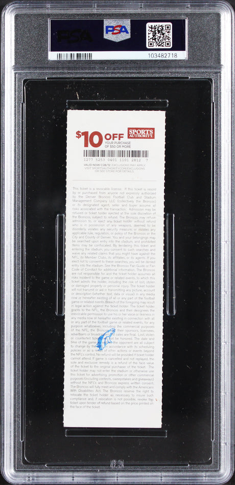 Very low stock (1 unit)$509Unit price /UnavailableBroncos Von Miller "NFL Debut" Signed 2011 Full Ticket Stub Auto 10 PSA Slab 2