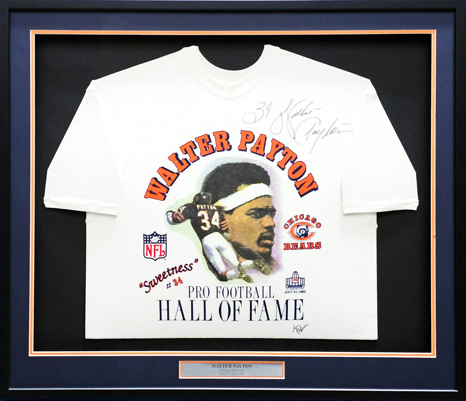 Walter Payton Autographed Framed Pro Football Hall of Fame White T-Shirt Chicago Bears "34" JSA #CC88896