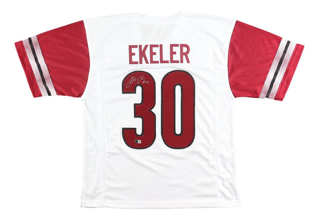 Add a standout piece to your collection with this Austin Ekeler signed custom football jersey—a must-have for fans of one of the NFL’s most dynamic running backs. Known for his explosive playmaking and versatility on the field, Austin Ekeler has become a key figure in the Los Angeles Chargers offense and a fan favorite across the league. This custom jersey captures that excitement in a collector’s item you'll be proud to own or display. Authenticated by Beckett, this signed jersey offers both genuine value and long-term collectible appeal for seasoned memorabilia enthusiasts and new collectors alike.