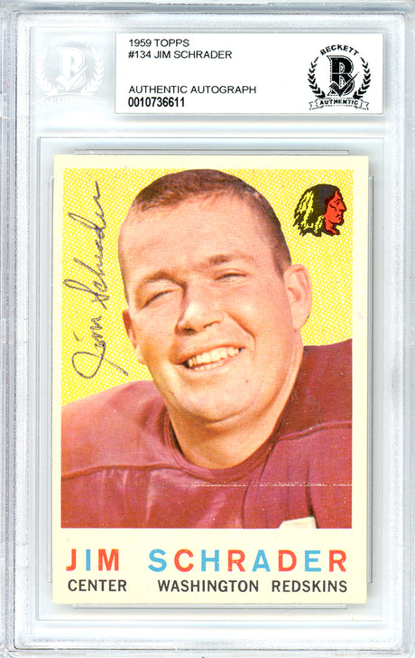 $519Unit price /Unavailable Jim Schrader Autographed 1959 Topps Rookie Card #134 Washington Redskins Beckett BAS #10736611