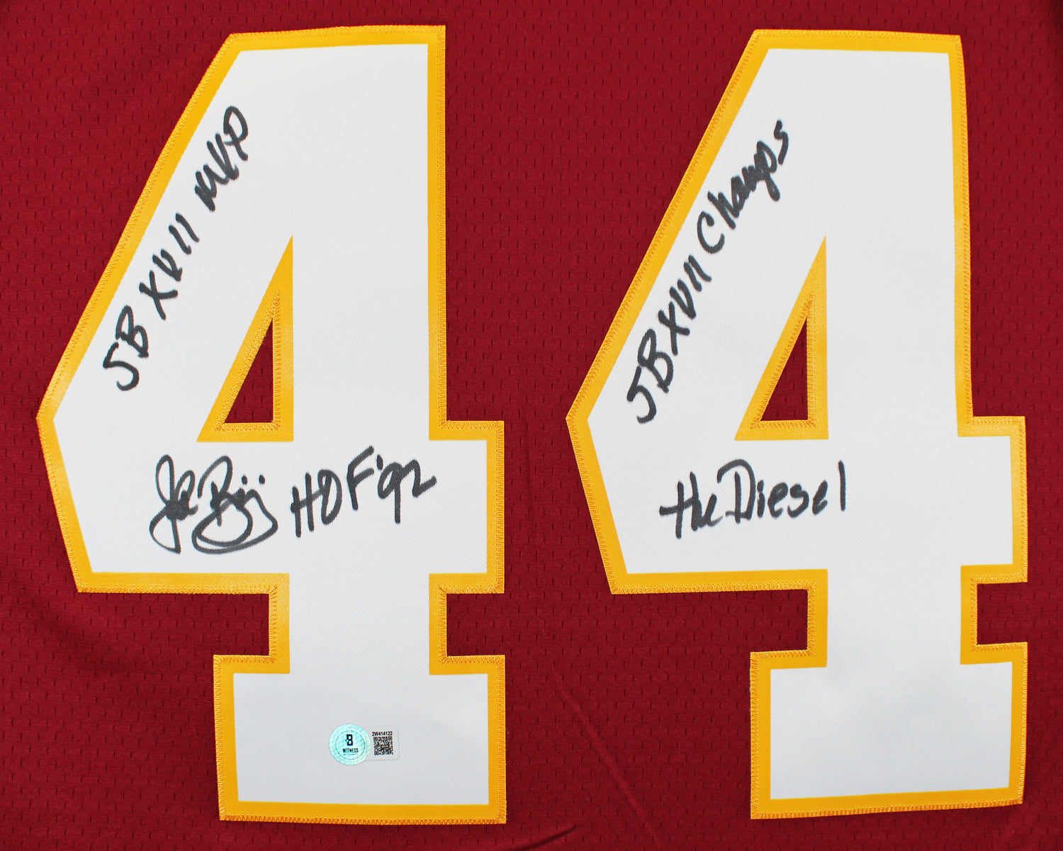 - Authentic Signature & Inscription – Hand-signed by John Riggins, featuring the inscriptions: "SB XVII MVP, SB XVII Champs, The Diesel, HOF 92."