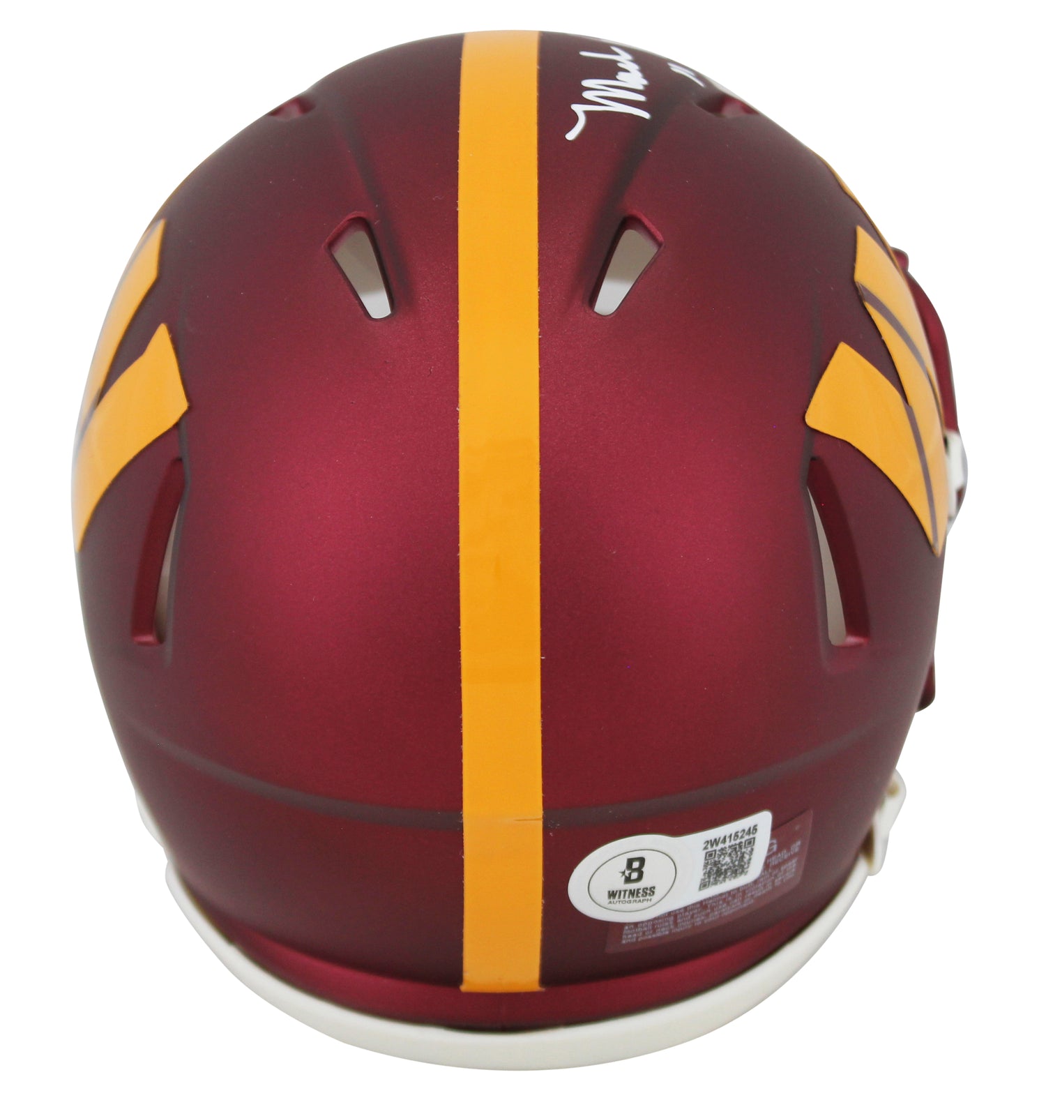 Own a piece of football history with this Mark Rypien Autographed Speed Mini Helmet, featuring the exclusive inscription "SB XXVI MVP". As the Super Bowl XXVI MVP, Rypien led Washington to championship glory, making this a must-have for collectors and die-hard fans alike. This mini helmet is 100% authentic, verified by Beckett Authentication Services (BAS), and includes their new scannable QR code hologram for instant authentication.