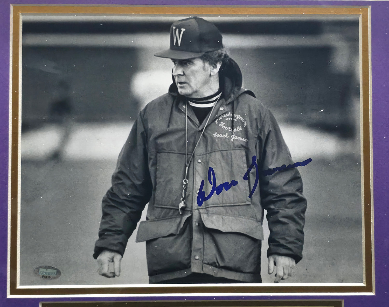 - Hand signed by Don James, legendary head coach of the Washington Huskies