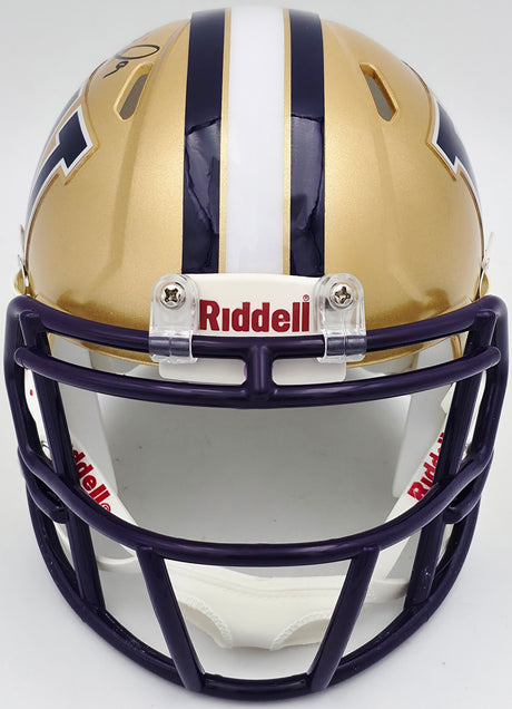 Dillon Johnson Autographed Washington Huskies Gold Speed Mini Helmet MCS Holo Stock #222073