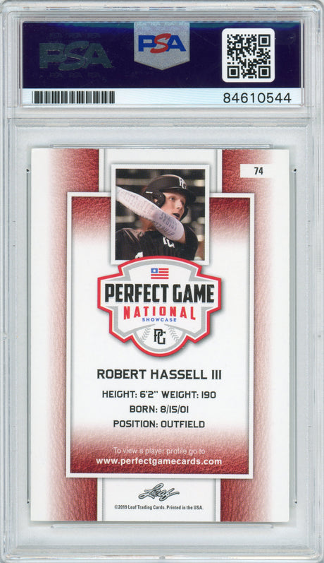 Very low stock (2 units)$119Unit price /Unavailable 2019 Leaf Perfect Game #74 Robert Hassell III RC Nationals PSA Autograph