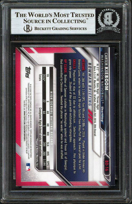 $99Unit price /Unavailable Nationals Carter Kieboom Authentic Signed 2016 Bowman Draft #BD16 RC BAS Slabbed