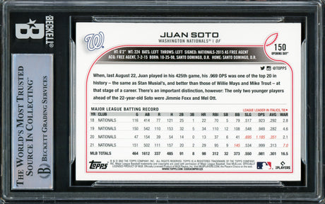 Juan Soto Autographed 2022 Topps Opening Day Card #150 Washington Nationals Beckett BAS #16545840