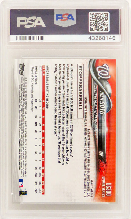 Juan Soto (Washington Nationals) 2018 Topps Update Baseball #US300 RC Rookie Card - PSA 10 GEM MINT