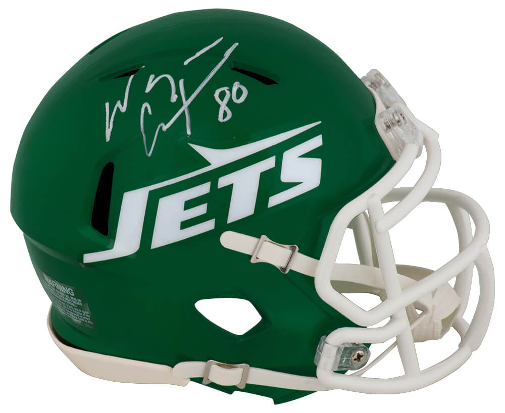 Own a piece of New York Jets history with this Wayne Chrebet signed New York Jets throwback green Riddell Speed mini helmet, modeled after the iconic 1980s style. A fan-favorite and one of the most beloved receivers in Jets history, Chrebet’s legacy as a dependable playmaker makes this autographed helmet a must-have for collectors and die-hard Jets supporters.
