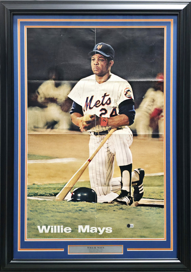 Willie Mays Autographed Framed 22x32 Poster New York Mets Beckett BAS #AE31356