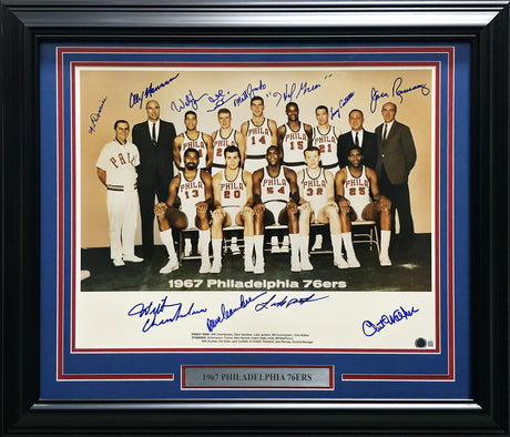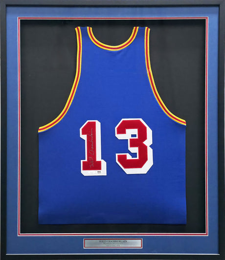 Philadelphia 76ers Wilt Chamberlain Autographed Framed Blue Jersey JSA #ZZ13989