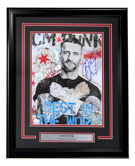 CM Punk Signed Framed 11x14 WWE Photo JSA Hologram