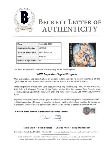 WWE Superstars (64) Cena, Edge, Sheamus, Mysterio, Signed 2010 WWE Program BAS