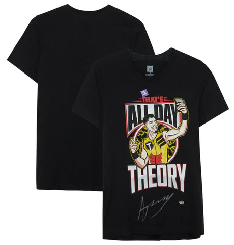 Austin Theory Autographed WWE Black That's All Day Theory Selfie T-Shirt Fanatics