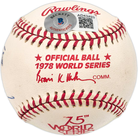 Yogi Berra & 5 Others Autographed Official 1978 World Series Baseball WS Champs Beckett BAS #AD43493