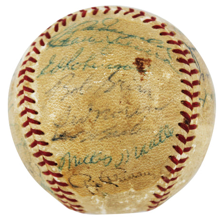 1955 Yankees (29) Mickey Mantle, Phil Rizzuto, Yogi Berra & Ed Ford Signed Baseball PSA #Q04470