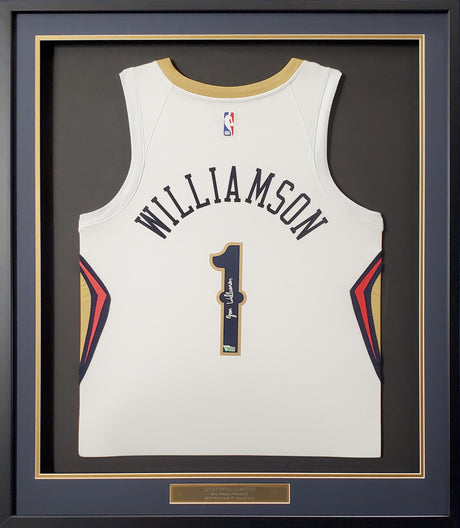 New Orleans Pelicans Zion Williamson Autographed Framed Blue Nike Jersey Fanatics Stock #191193