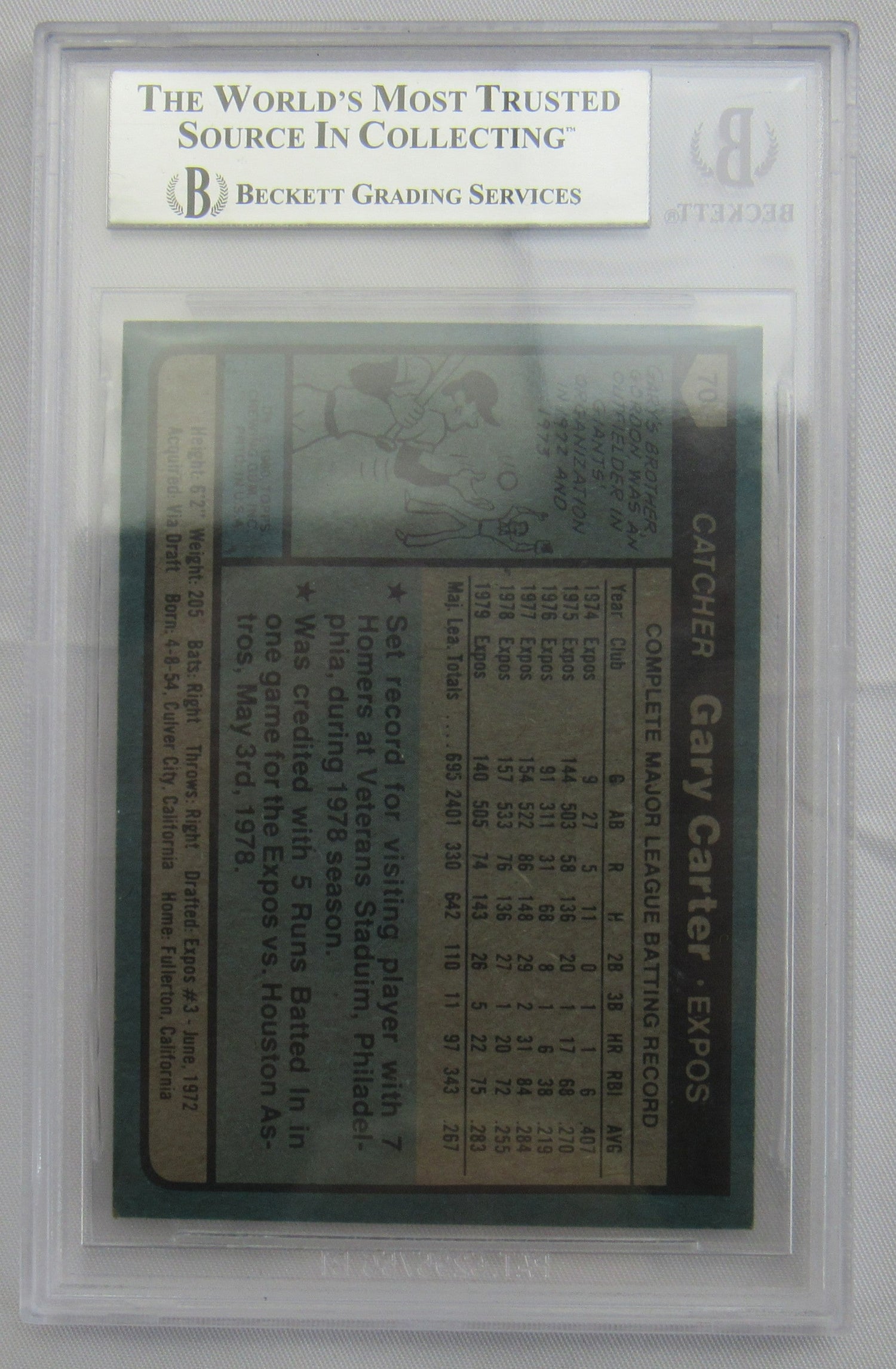 1980 Topps Gary Carter Signed Beckett Encapsulated Baseball Card