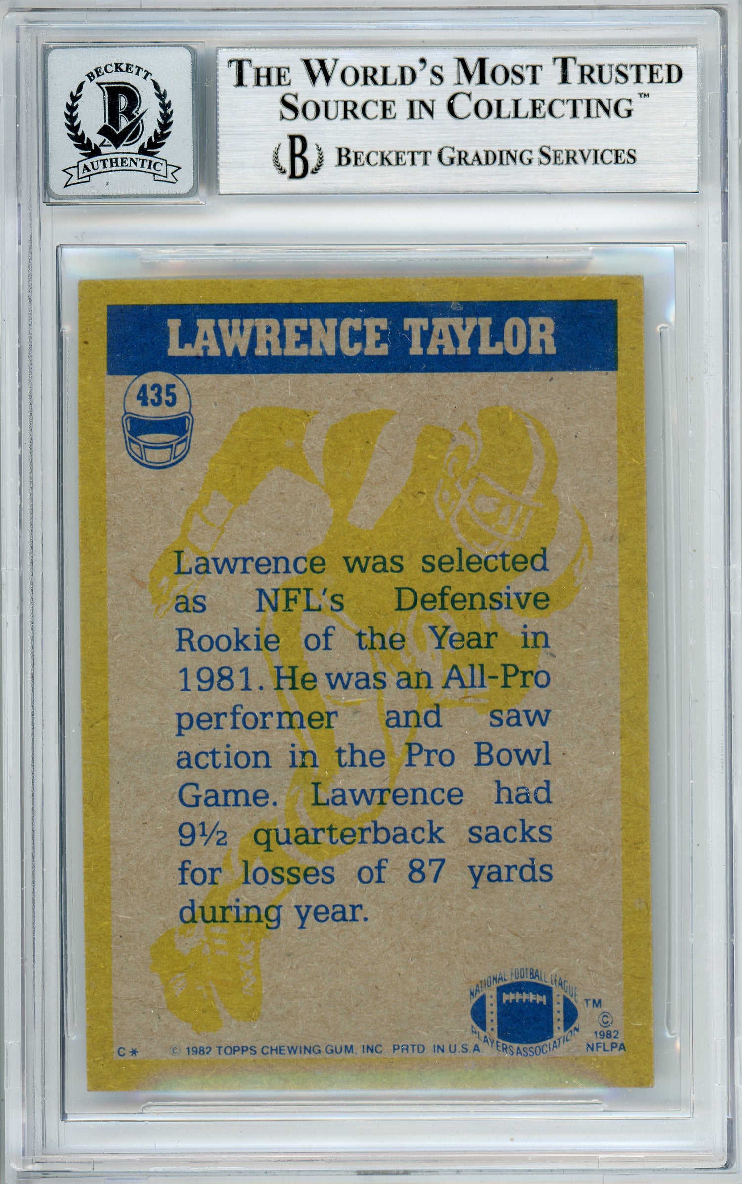1982 Topps In Action #435 Lawrence Taylor RC New York Giants BGS Autograph 10