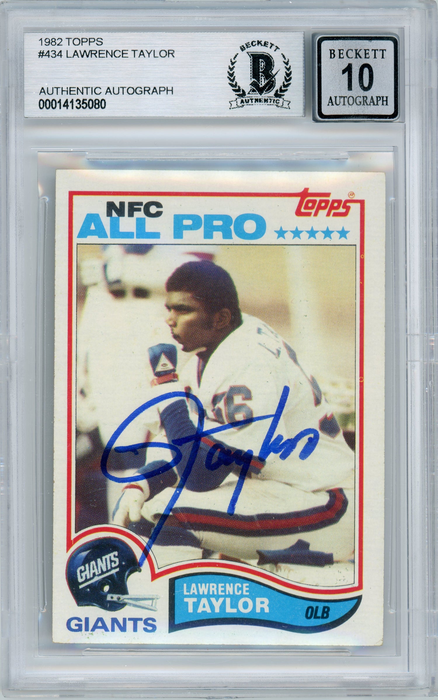 1982 Topps NFC All-Pro #434 Lawrence Taylor RC Giants BGS Autograph 10