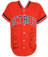 Celebrate a piece of baseball history with this 1984 Detroit Tigers Team-Signed Kirk Gibson Mitchell & Ness Orange Replica Jersey. This stunning collector’s item is autographed by 13 key members of the 1984 World Series Champion Detroit Tigers, making it a must-have for serious Tigers fans and memorabilia collectors.