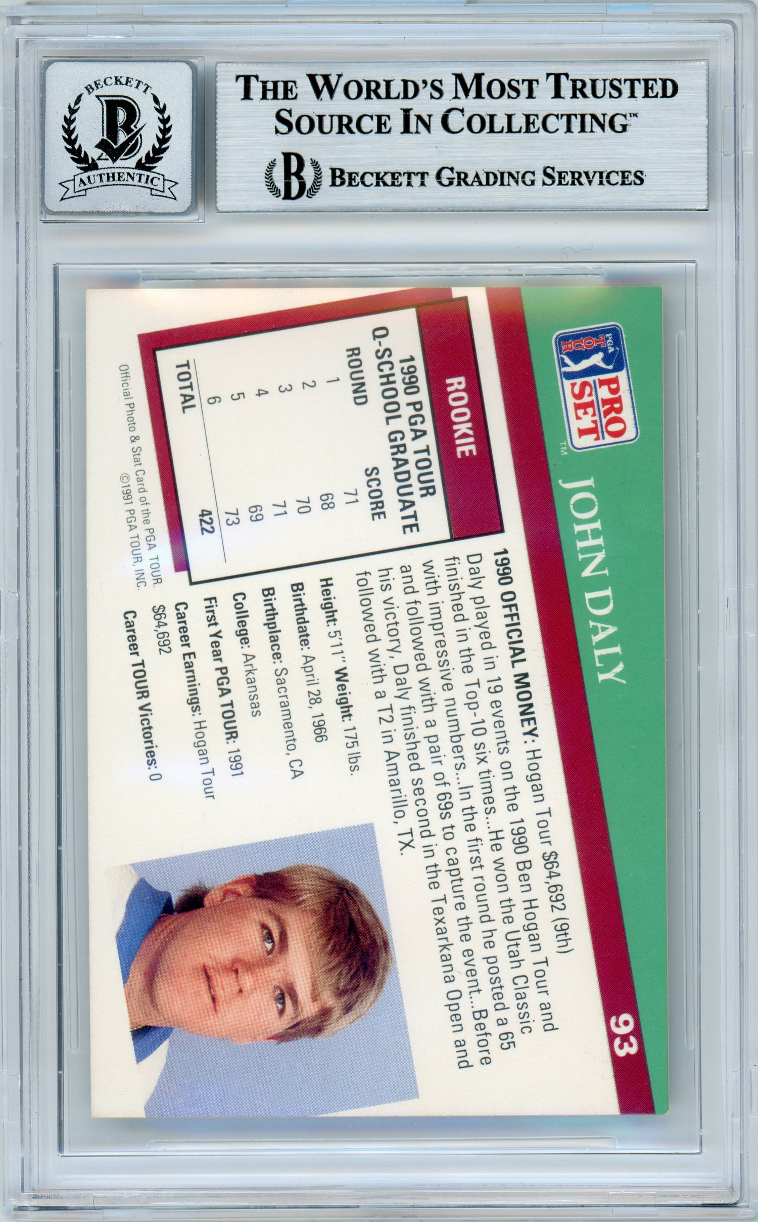 Own a piece of sports history and honor one of the game's most unforgettable players with this official John Daly 1991 Pro Set rookie card, signed and BGS authenticated.
