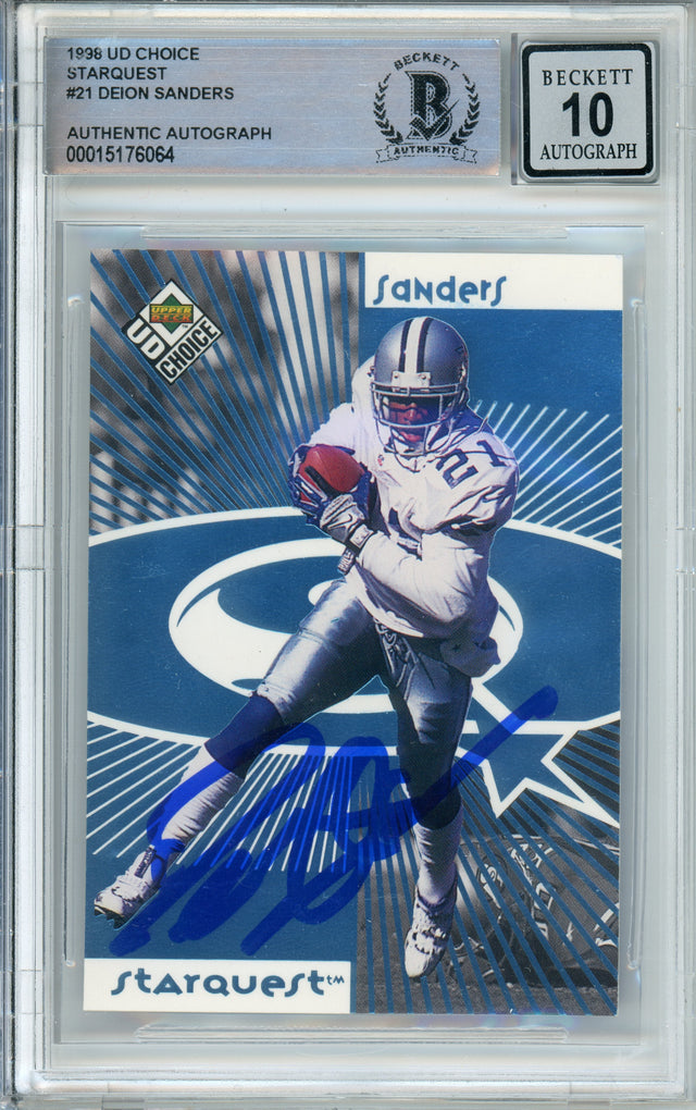 1998 Upper Deck Choice StarQuest #21 Deion Sanders Dallas Cowboys BGS Auto 10
