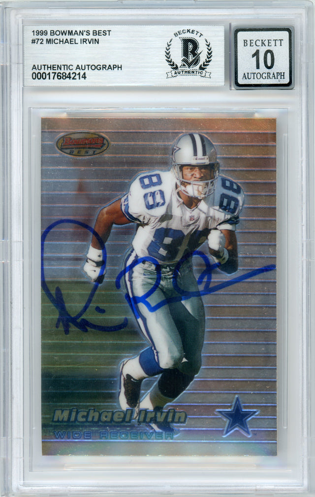 1999 Bowman's Best #72 Michael Irvin Dallas Cowboys BGS Autograph 10