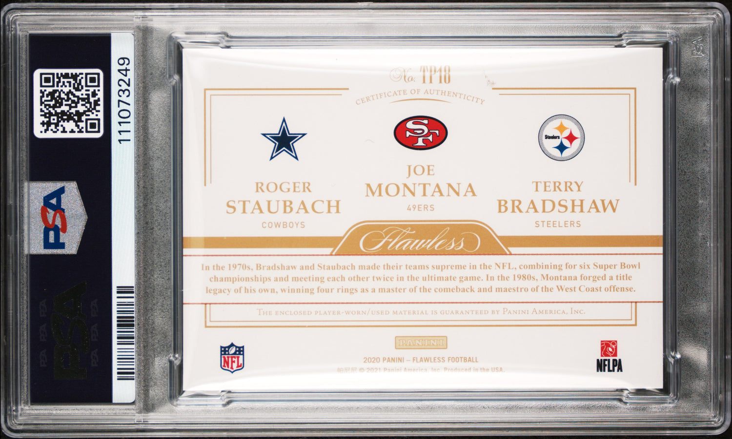 (3) Staubach, Montana, Bradshaw Signed 2020 Flawless #TP18 Card Auto 10 PSA Slab