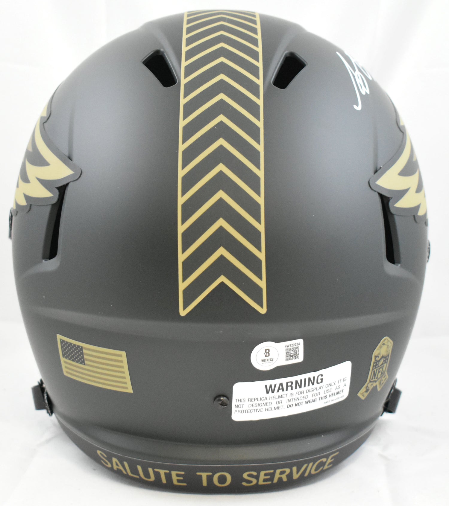 Celebrate your Philadelphia Eagles pride with this AJ Brown autographed Riddell full-size “Salute to Service” 2025 Speed Replica Helmet. As one of the NFL’s top wide receivers, Brown has quickly become a fan favorite and a key impact player in Philadelphia's high-powered offense. This exclusive collectible is more than just a helmet—it's a tribute to your team, your country, and one of the league’s brightest stars, all in one incredible piece. Authenticated for peace of mind, this signed helmet is perfect for serious collectors and devoted fans alike.