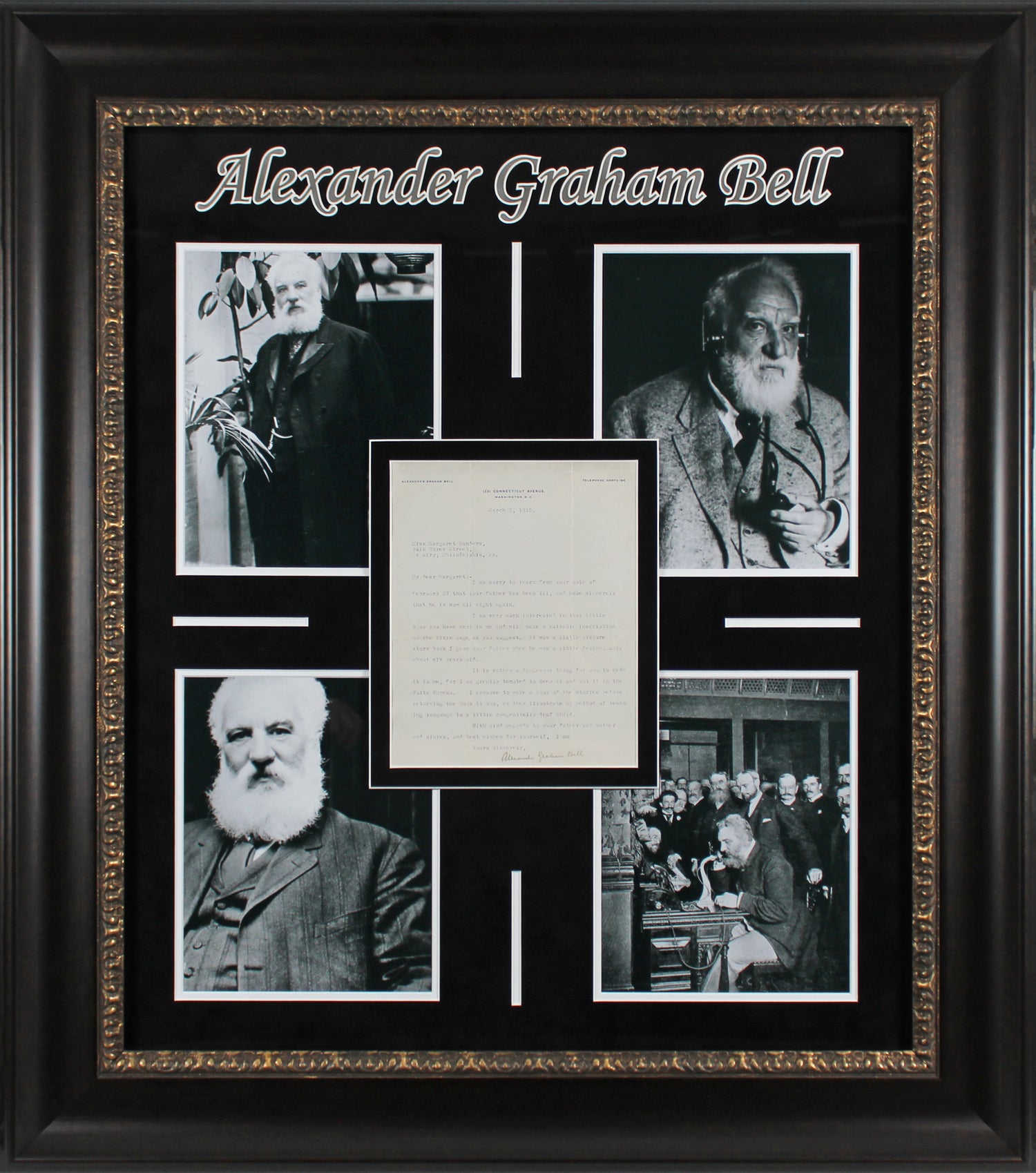 Own a rare piece of history with this Autographed & Framed Typed Letter, dated March 3, 1915, personally signed by Alexander Graham Bell. A true collector's gem, this letter offers a tangible link to one of history’s greatest inventors, known for revolutionizing communication with the invention of the telephone. This one-of-a-kind piece has been professionally framed to an impressive 31 x 34.5 inches, making it a striking addition to any memorabilia collection.