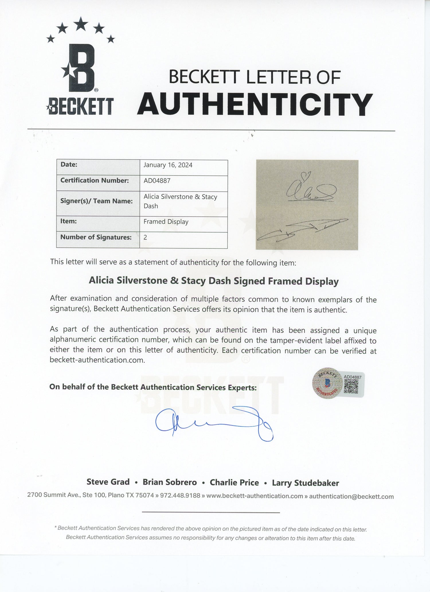 - Hand-Signed by Alicia Silverstone & Stacey Dash – Stars of the beloved 1995 film Clueless.