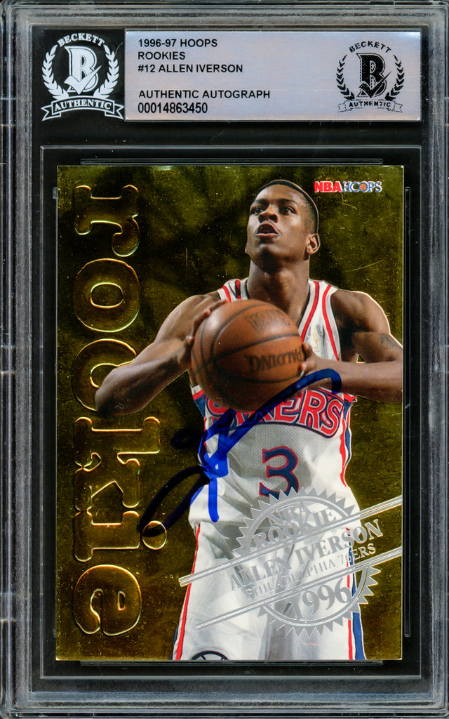 Allen Iverson Autographed 1996-97 Hoops NBA Rookie Card #12 Philadelphia 76ers Beckett BAS #14863450