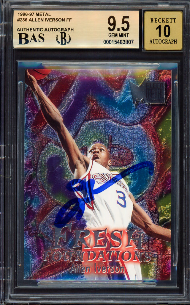 Allen Iverson Autographed 1996-97 Metal Rookie Card #236 Philadelphia 76ers BGS 9.5 Auto Grade Gem Mint 10 Beckett BAS #15463807